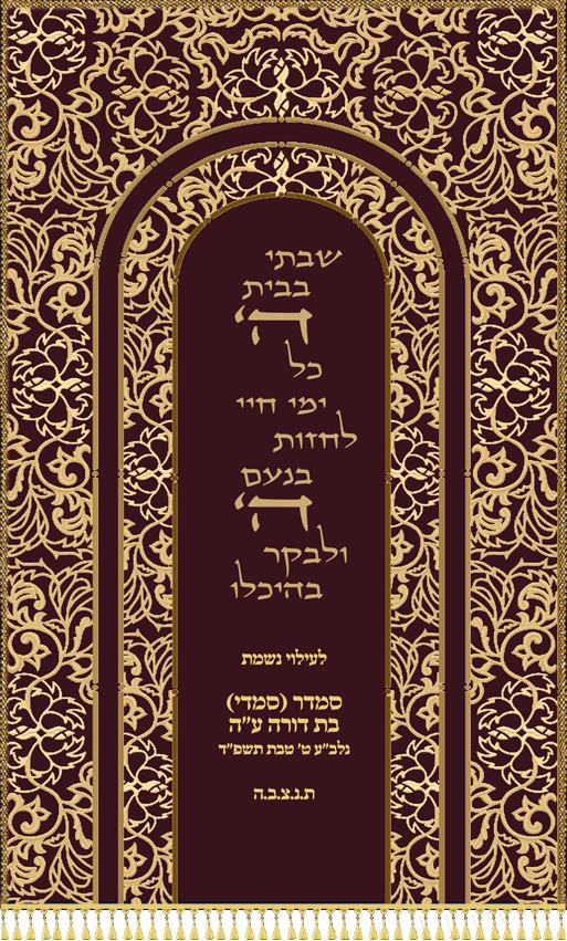 שער הכבוד "אחת שאלתי" בנוי ממשרביה של ארון קודש, עיטורים עשירים ברקמת מעברים מובנית היוצרת מעברים משולבים לתוצאה עשירה ומיוחדת מאוד. במרכז השער פסוק מפרק כ"ז בתהילים "לדוד ה'….