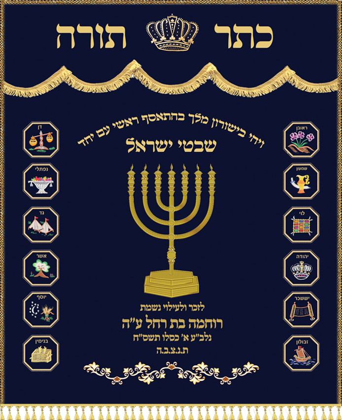 פרוכת לבימה - ואני תפילתי גוונים - רקמה אהרון